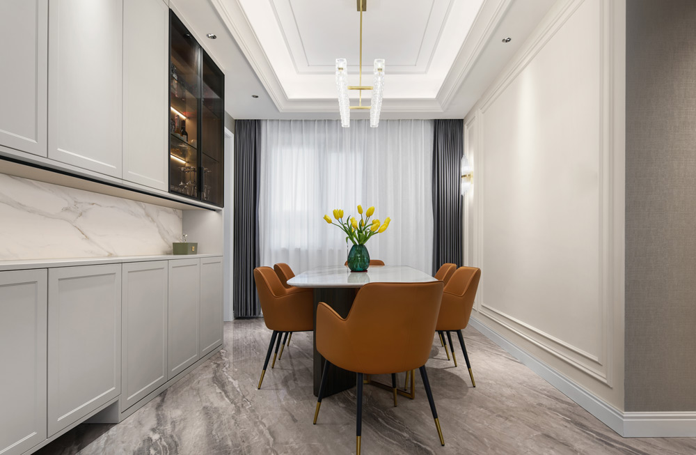 新中式裝修別墅要講究空間的層次感,這是比較傳統(tǒng)的審美觀念,因為富有層次感的空間會更美,所以為了突出空間的層次感,通常在設計裝修時會采用啞口或者是博古架、屏風等來做分隔,通過這些分隔方式來凸顯空間的層次感,會讓空間看起來更加的古樸、雅致。