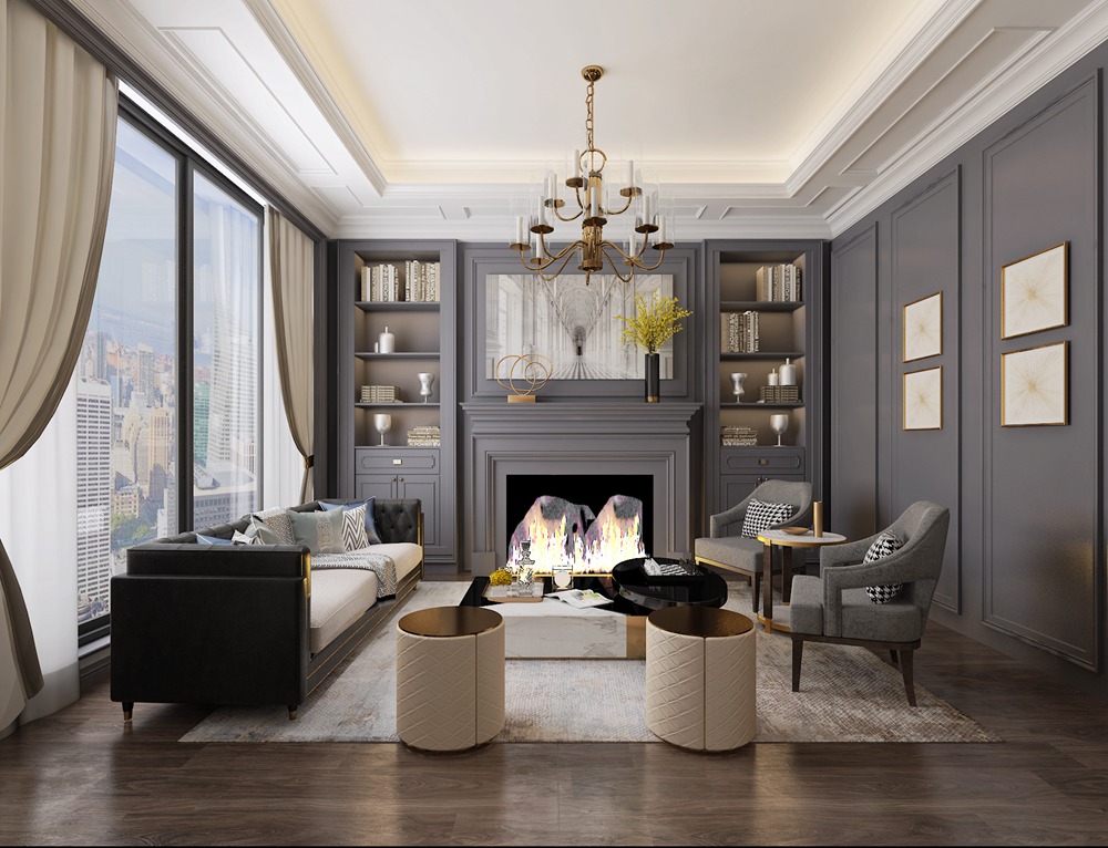 碧桂園267平米港式輕奢風格裝修-客廳