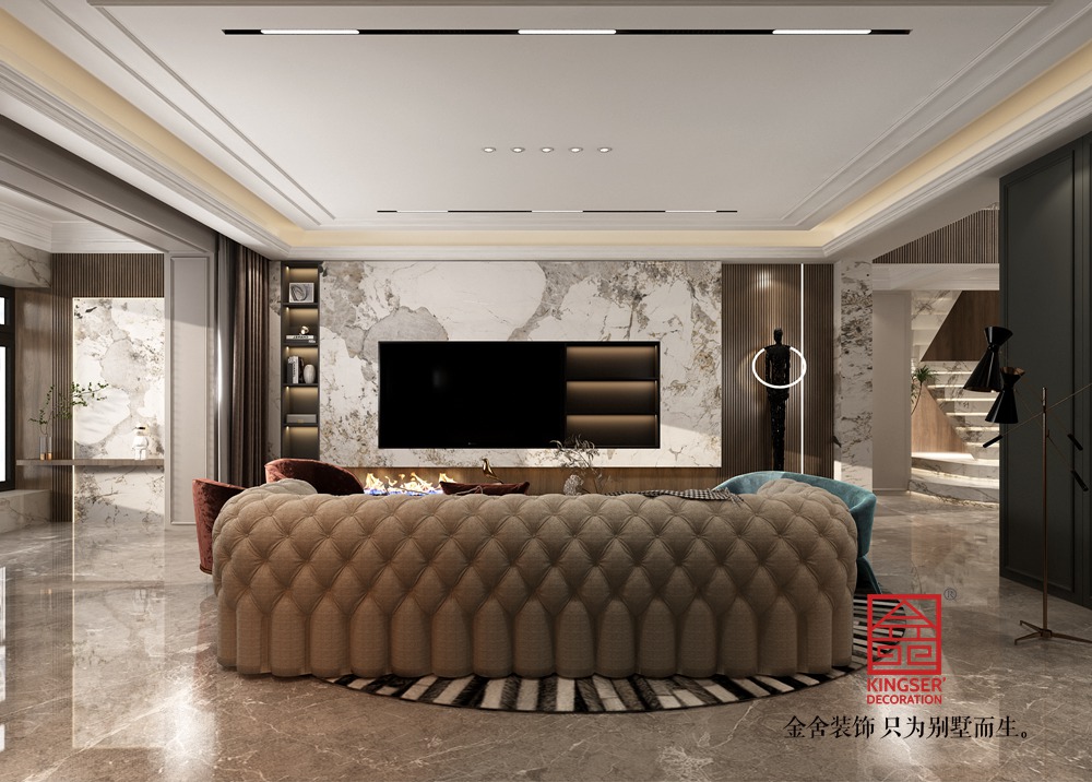 星河盛世400平米輕奢風格軟裝- 客廳