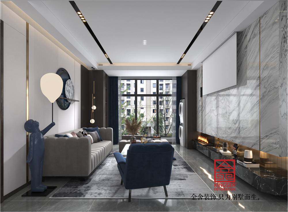 遠(yuǎn)洋晟庭170平米現(xiàn)代輕奢裝修-客廳