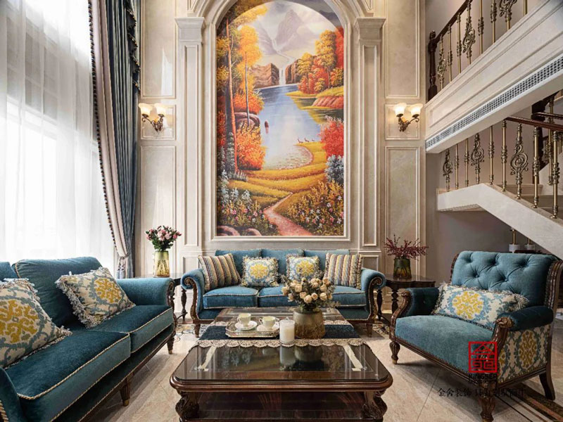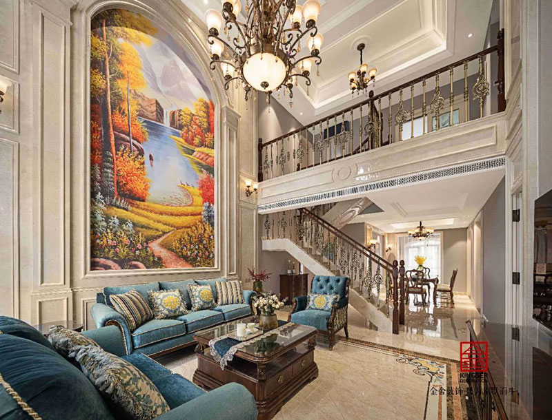 藍郡別墅裝修設計600㎡美式風格客廳設計實景圖