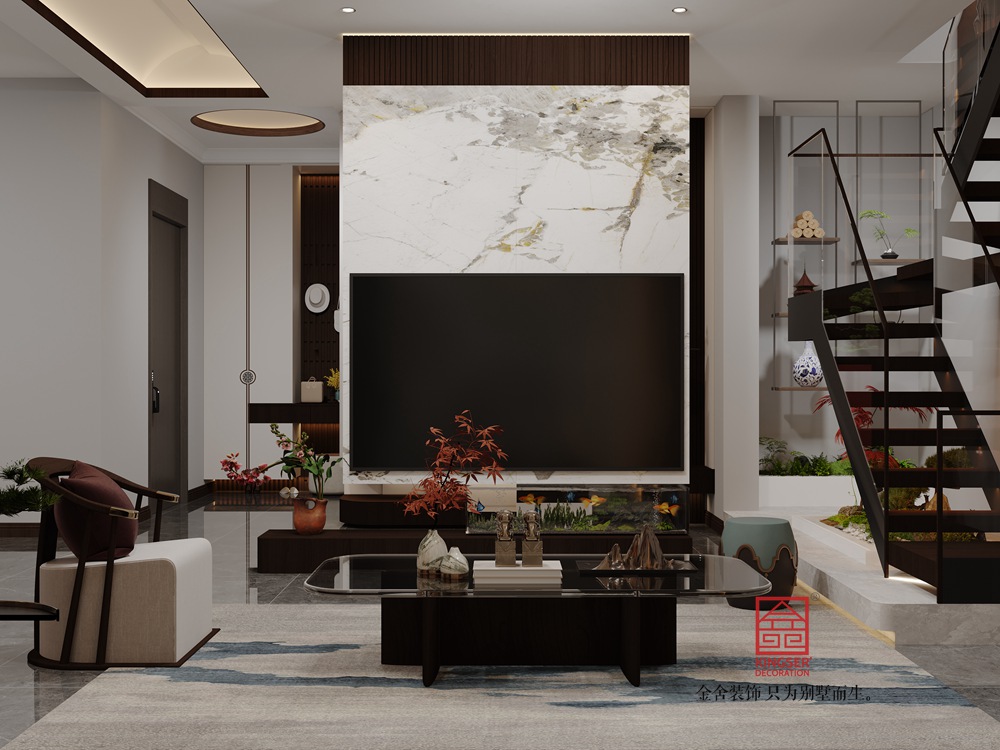 金地閱峯180平米新中式風格裝修-客廳