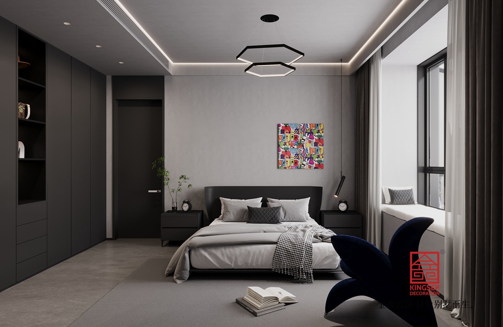 金地閱峯260平米下躍現代輕奢風格裝修-臥室