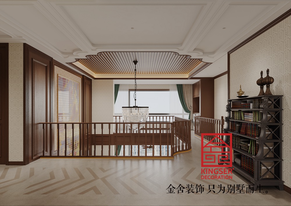 玫瑰灣380㎡頂躍美式風格裝修-書房