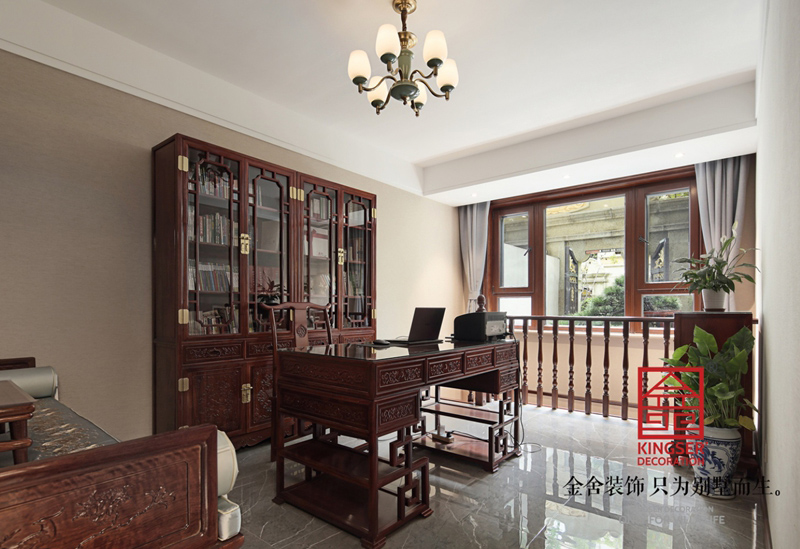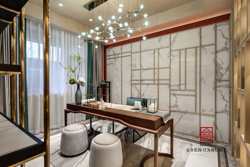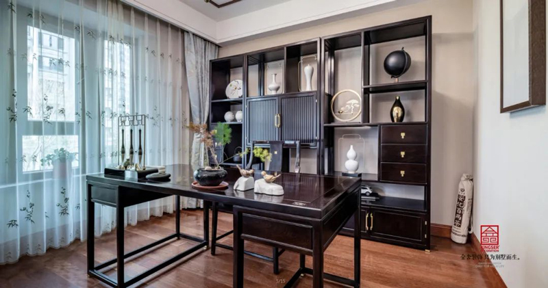 國賓壹號210㎡新中式風格裝修書房設計實景圖