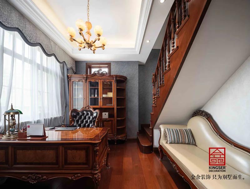 西山林語別墅裝修540㎡歐式風格書房設計實景案例