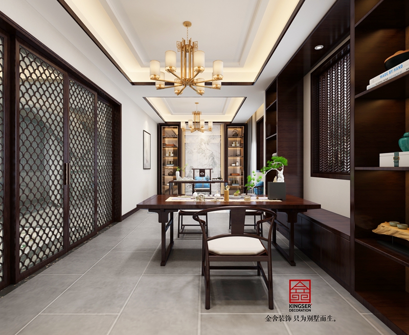 原河名墅600㎡新中式風格裝修茶室實景圖案例