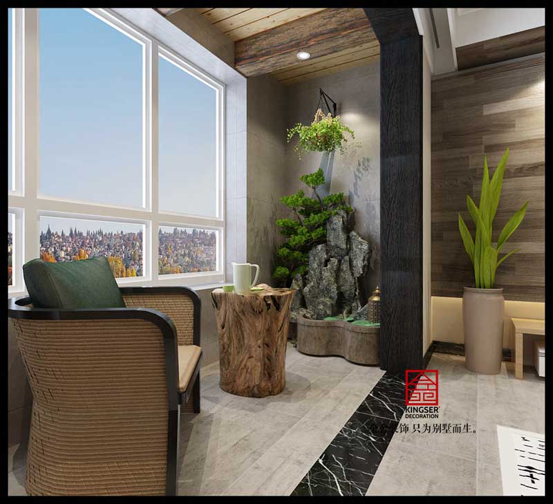 盛邦大都會150平米侘寂風格裝修-陽臺