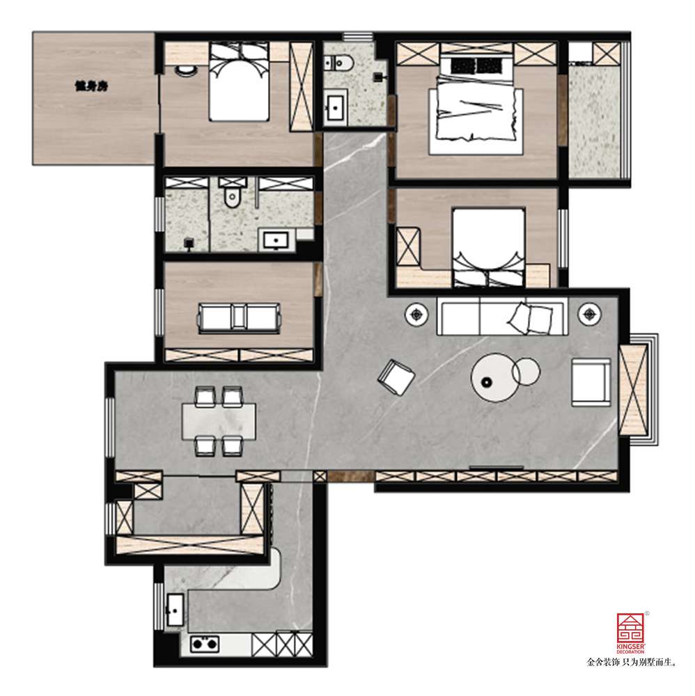 改進方案:廚房旁邊衛生間改成衣帽間,原先門封上再餐廳處新增一個推拉門,增加收納空間的同時增加通透感