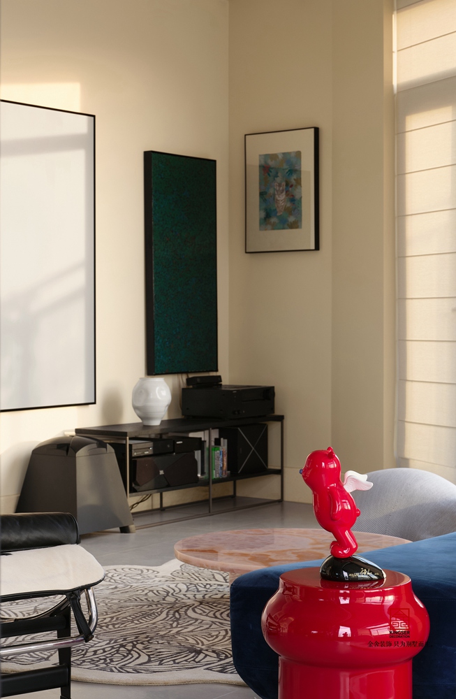 強對比的黑白配色,光線與空間線條的完美融合,不斷突出的細節設計讓空間突出藝術的質感。 空間自由巡回的動線與不同的材質的拼接,讓人們似乎體會到設計師對自己生活合理而特立獨行的規劃。