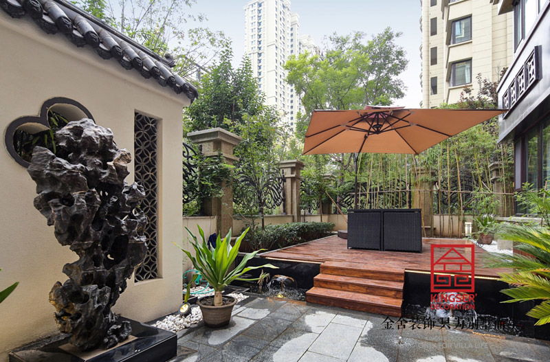 檐廊石景,一步一韻,舊式園林的味道被濃縮小小的方寸之間,美輪美奐,獨具時韻。