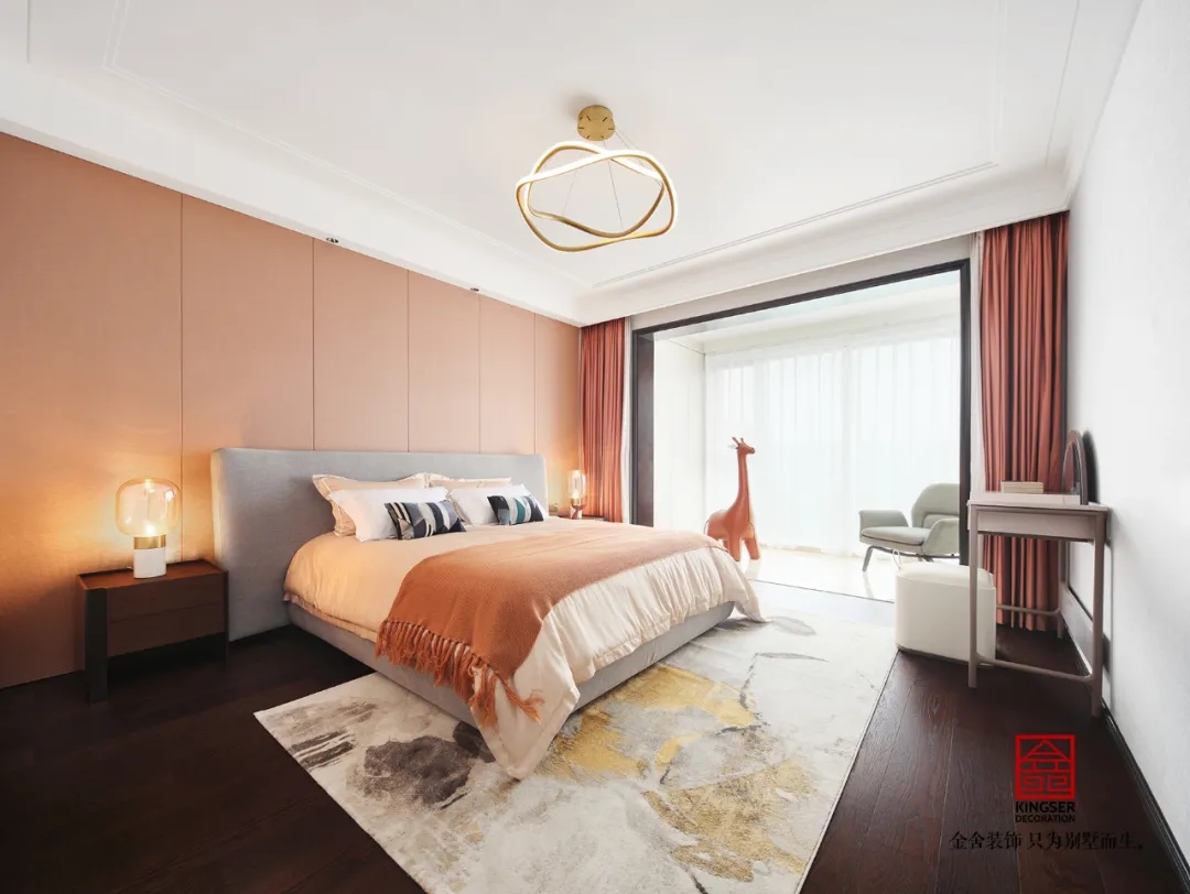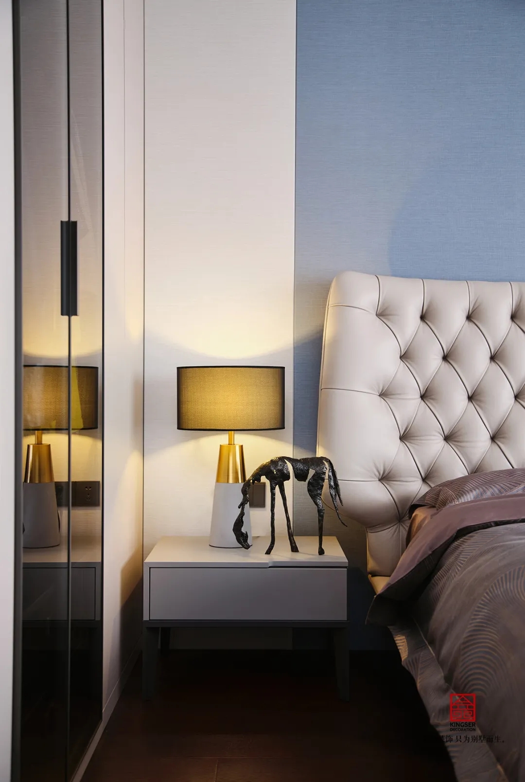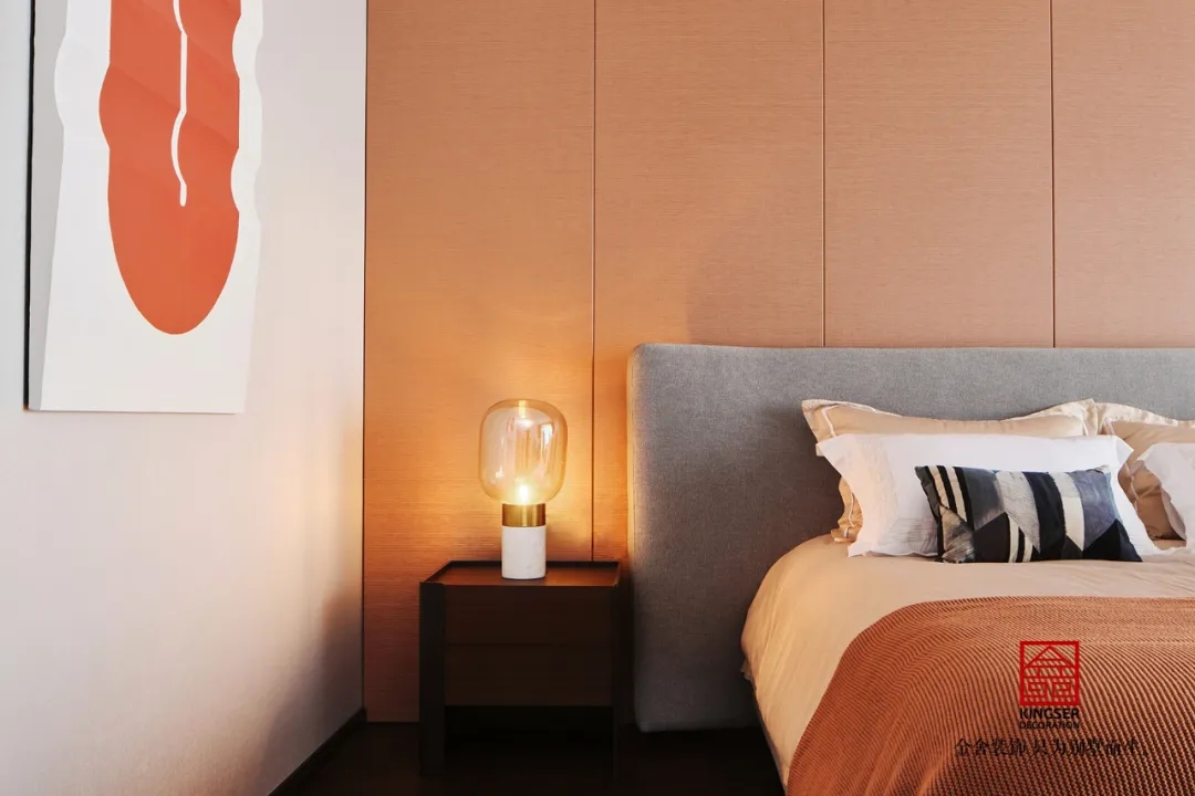 臥室在現(xiàn)代輕奢風(fēng)格與時下流行的“輕硬裝、重軟裝”的理念非常符合,硬裝上面主打簡約、線條流暢,不會過于浮夸,同時兩個臥室運用的顏色也貼合了莫蘭迪色系,營造出一種舒適而不失設(shè)計感的氛圍。