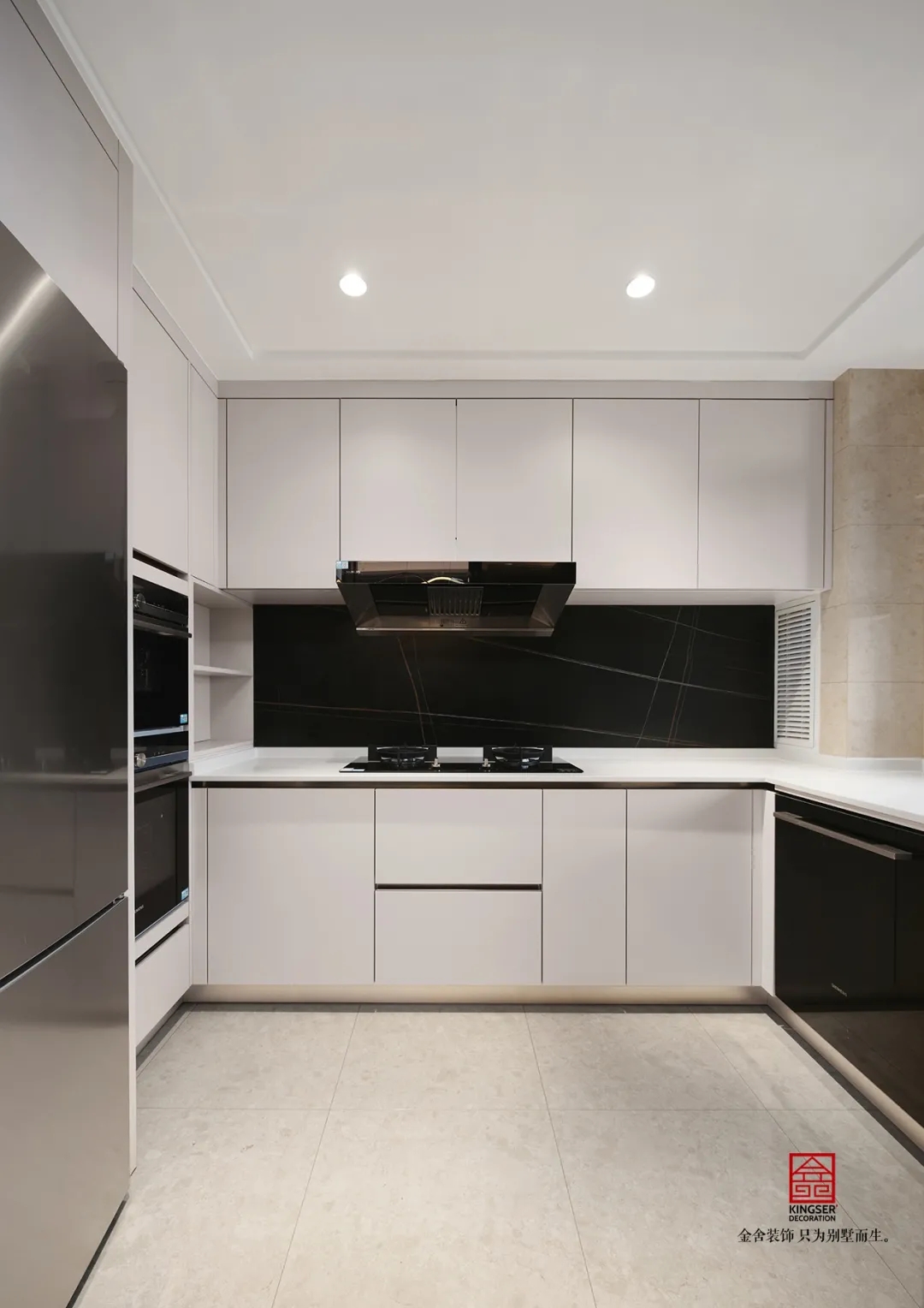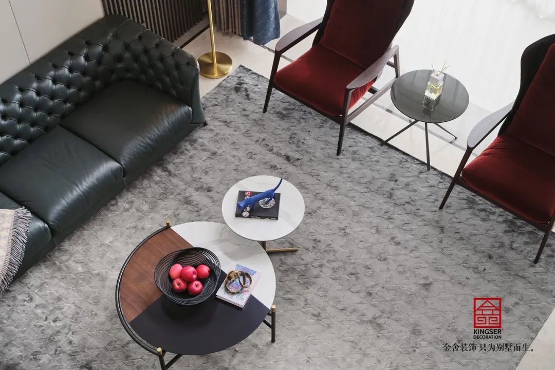 設(shè)計師摒棄過多華麗的裝飾和多余的造型,注重設(shè)計的細(xì)節(jié),運用層次豐富的材質(zhì)來裝飾細(xì)節(jié)。材料上大多以簡約,質(zhì)樸溫潤的木飾面,自帶奢華感的大理石,金屬線條、玻璃和鏡面等元素,為空間締造層次感,彰顯高品質(zhì)的生活格調(diào),既平衡了空間,又展現(xiàn)了別具一格的藝術(shù)氣質(zhì)。大面積的飽和顏色讓整個空間突顯出一種成熟穩(wěn)重的感覺。