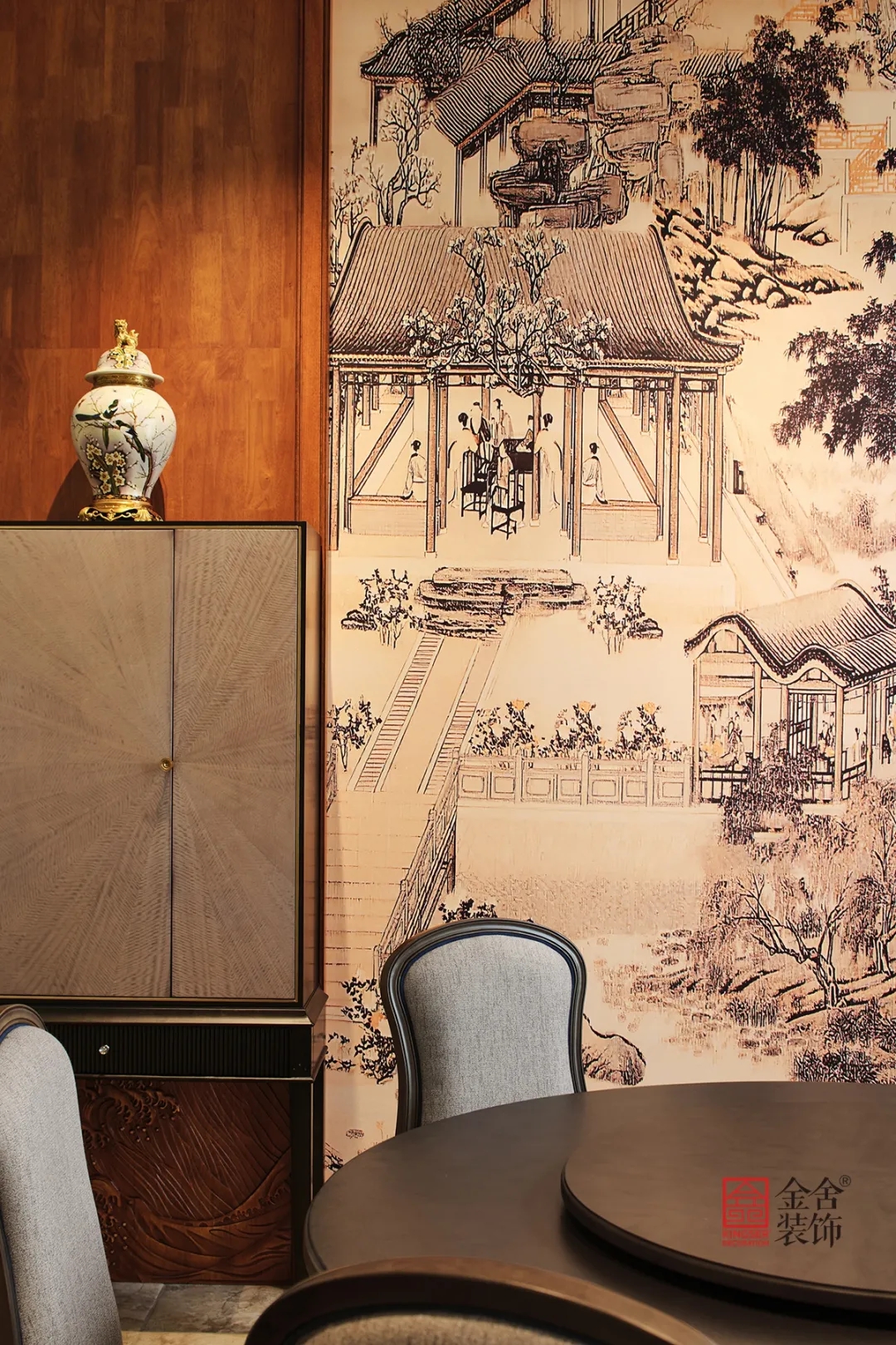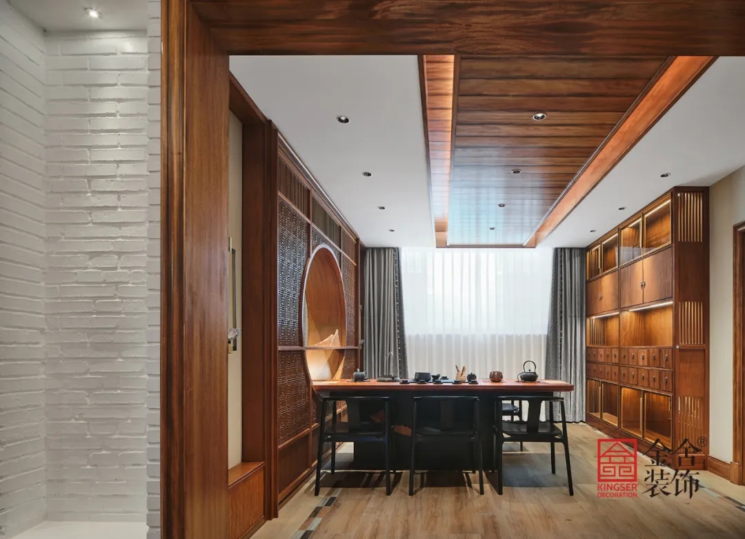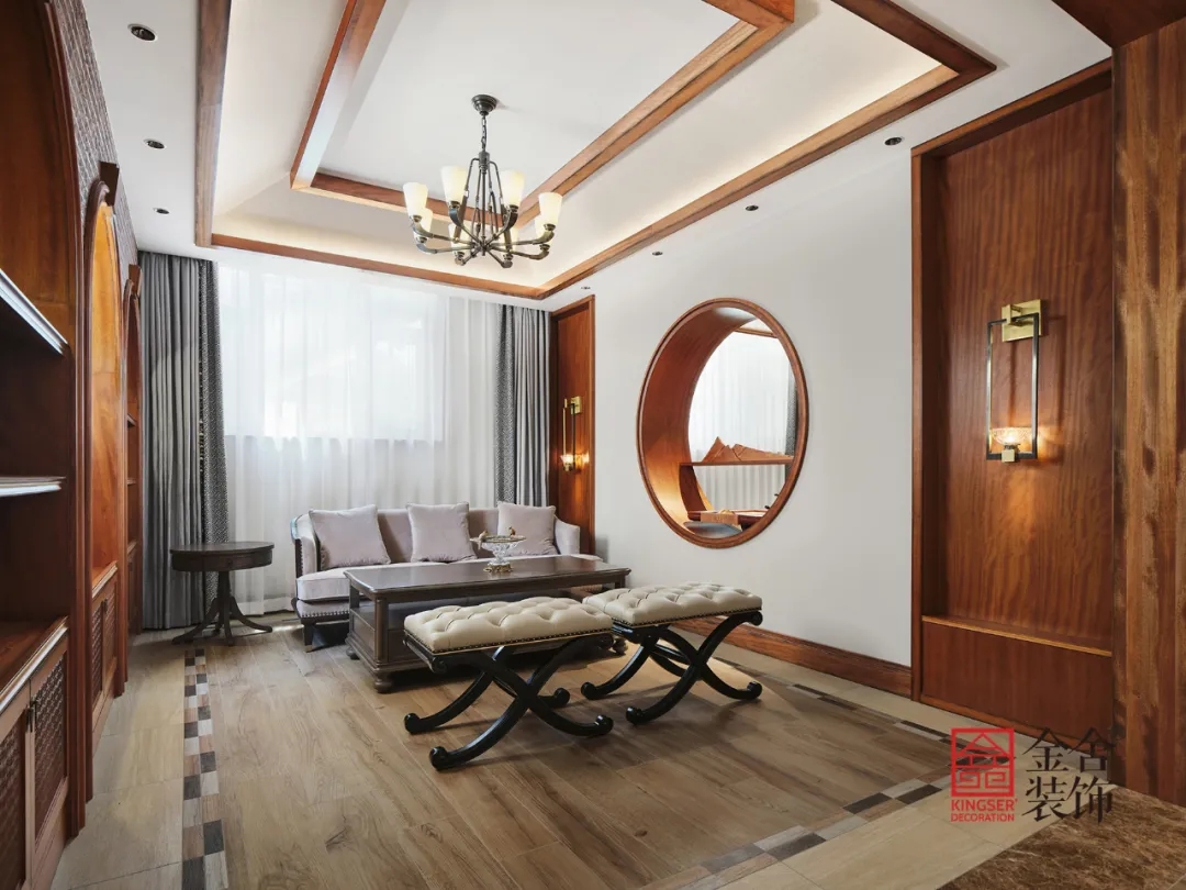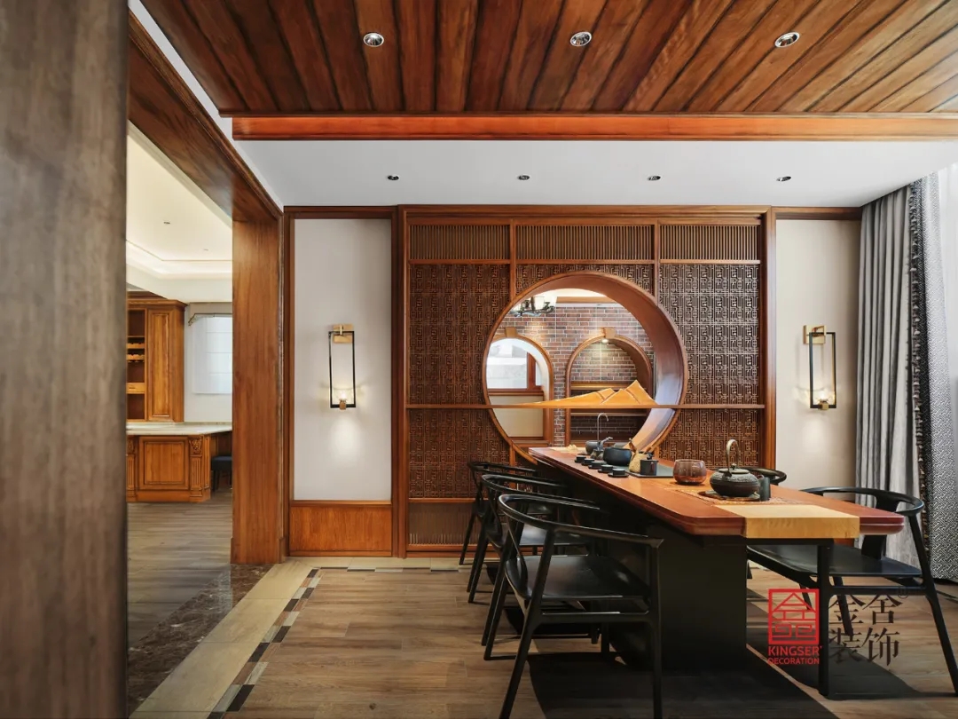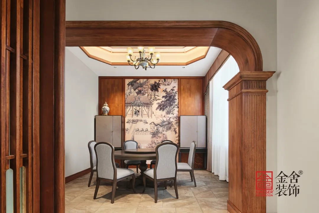 此案例為金舍裝飾-蓮花庭院600平米別墅中式風格裝修實景。有一種美,穿越了數(shù)百年長河,它是古建房屋上最初的輪廓。歷經(jīng)著風霜雨雪、塵埃飛沙,卻依然靜臥于屋背脊檐之上。
