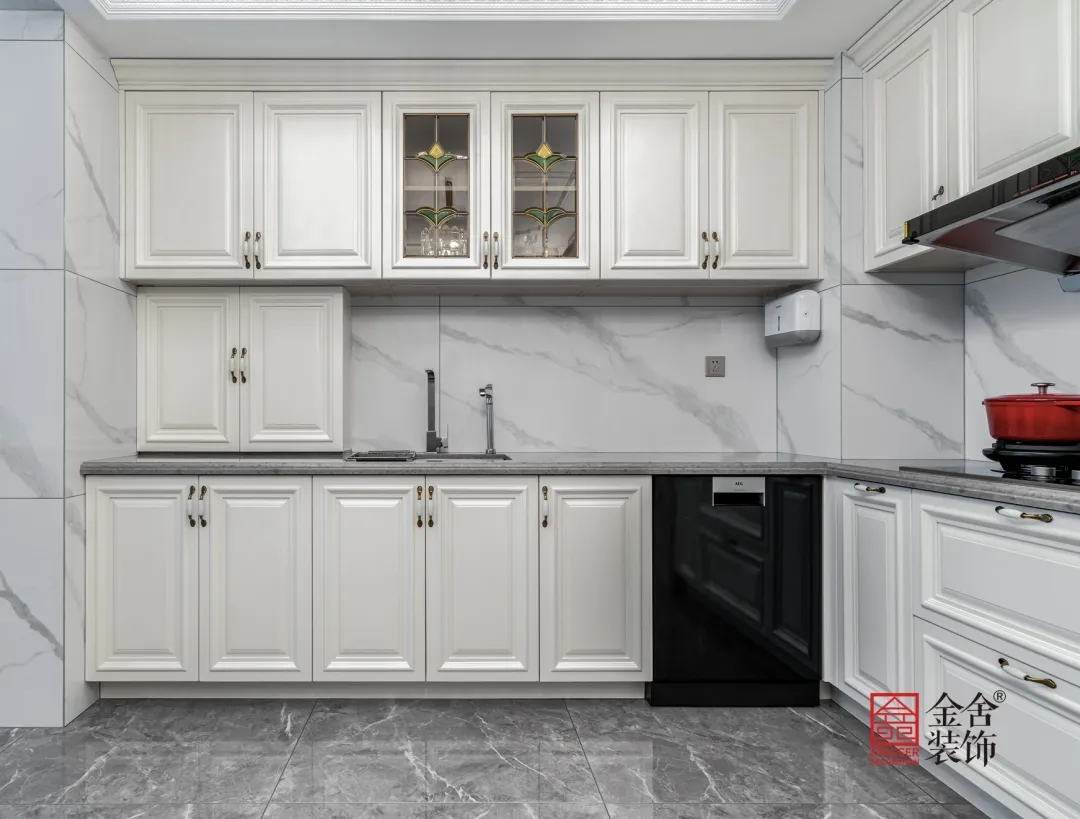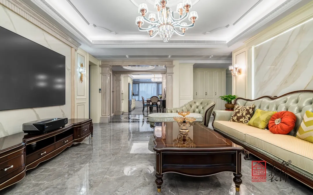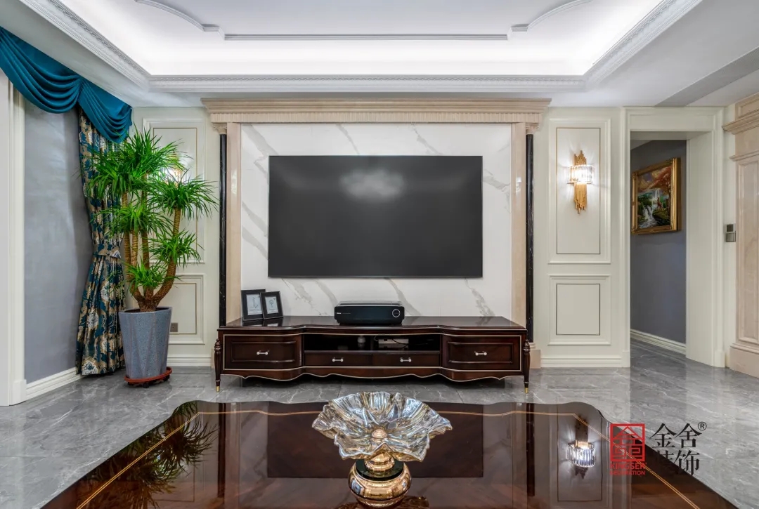 客廳在色彩上的運(yùn)用較為簡潔,用明色系的白色、淡金色讓客廳顯得更加寬敞明亮,既突出了文化內(nèi)涵,又豐富了客廳的裝飾效果。精致大氣的家具,詮釋古典主義的大氣與嚴(yán)謹(jǐn)。無論是天花還是地面,都以極其精致的設(shè)計,展示主人的高雅品味。雖沒有美式的悠閑韻味,卻多出了不少浪漫氛圍。極具美感的細(xì)節(jié)設(shè)計,是不少人鐘愛歐式的理由。