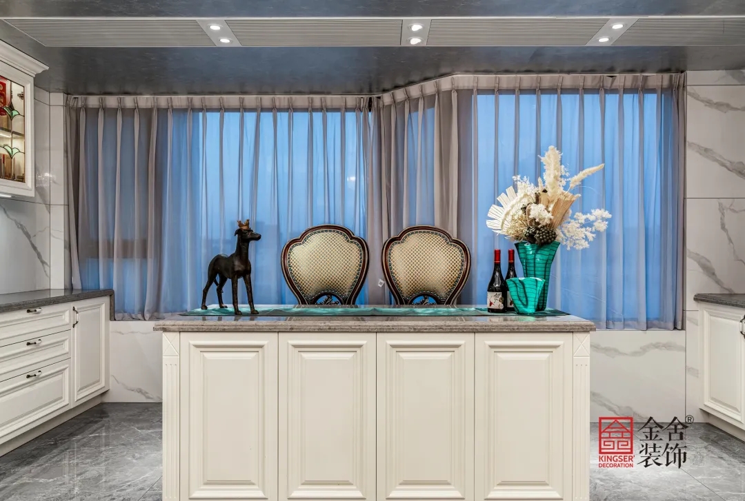 餐廳和廚房融為一體,開放式的設(shè)計美輪美奐。高挑的吧臺給人一種舒適時尚的感覺。讓人流連忘返。