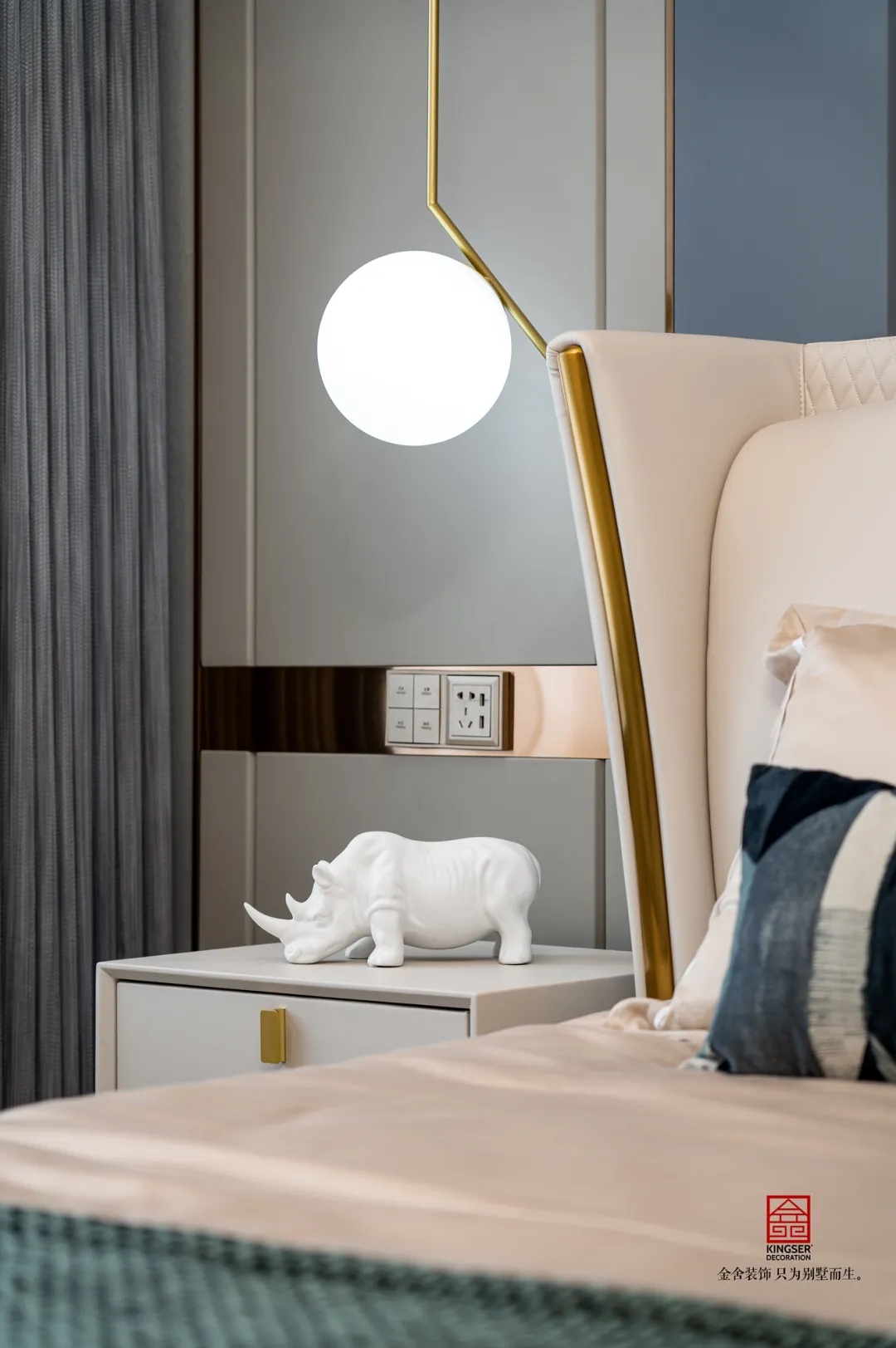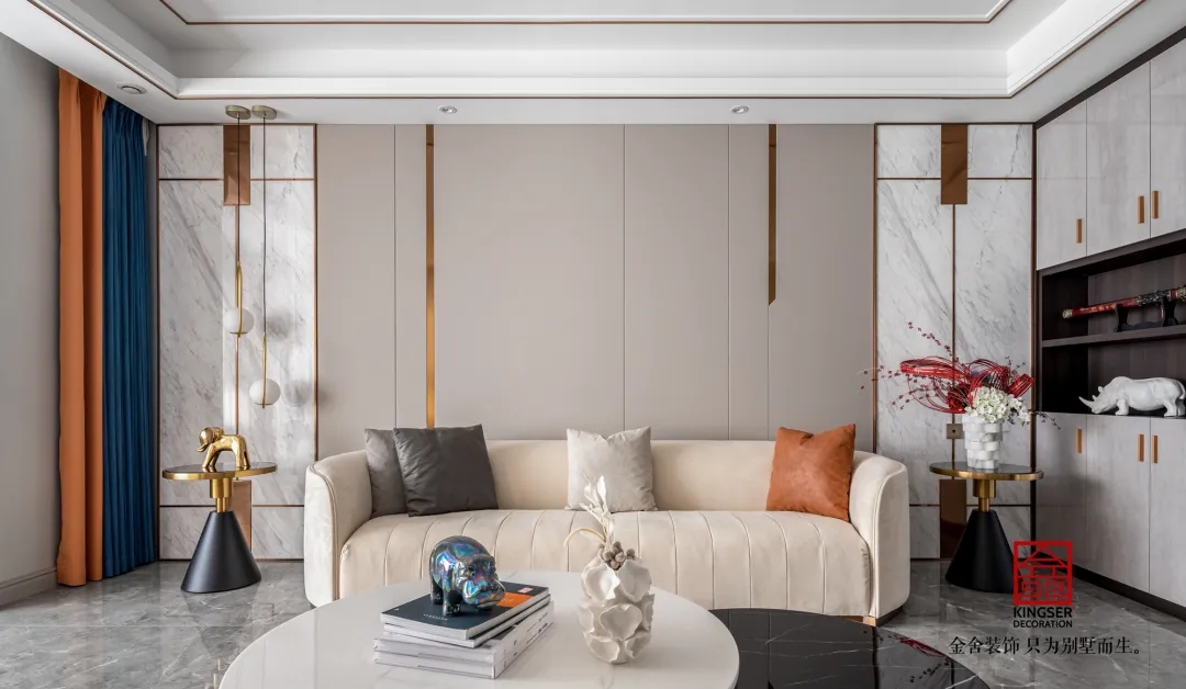 現代輕奢注重居室空間的布局相對平衡的空間打造舒緩的氣氛線條感打造居室的視覺延伸同時使用家具、布藝、色彩等客廳同時以開闊視野加上對現代設計色調的把握