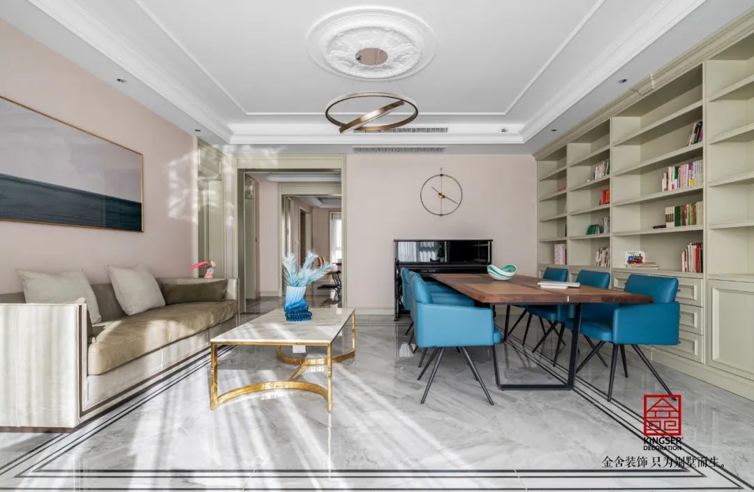 造型簡潔,線條流暢的家具組合搭配,營造出穩定、協調、溫馨的空間感受,滿足現代年輕家庭的功能需求,同時為業主營造一個完全放松的家居環境。