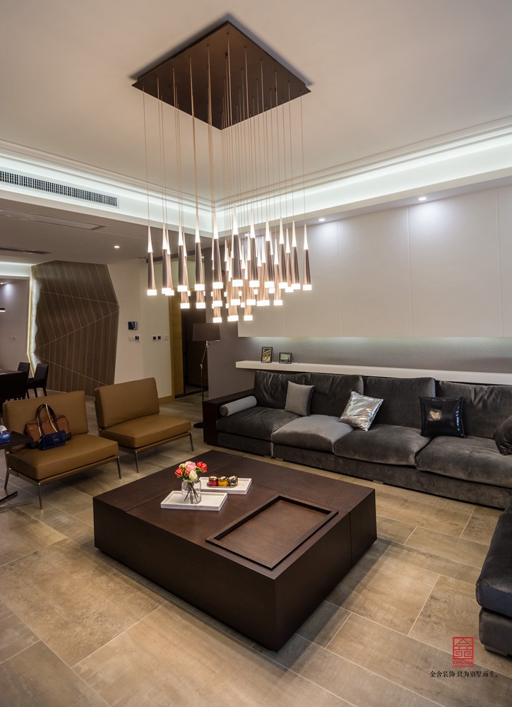 輕奢風格的空間以木質、皮革、大理石的中性色調為主,用色彩的純度傳遞細膩的質感。造型簡潔,線條流暢的家具組合搭配,營造出穩定、協調、溫馨的空間感受,滿足現代年輕家庭的輕奢需求。餐廳斜角的燈槽造型,貼近自然,有石材的溫潤感,高級灰豐富的色彩疊加,都是以最典型的現代簡約港式風格為主,令所有的色調統一,同時,細節處流露出精致的生活情調。