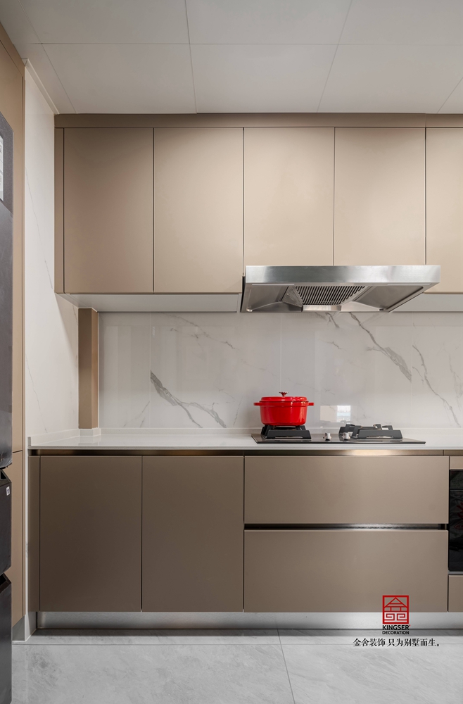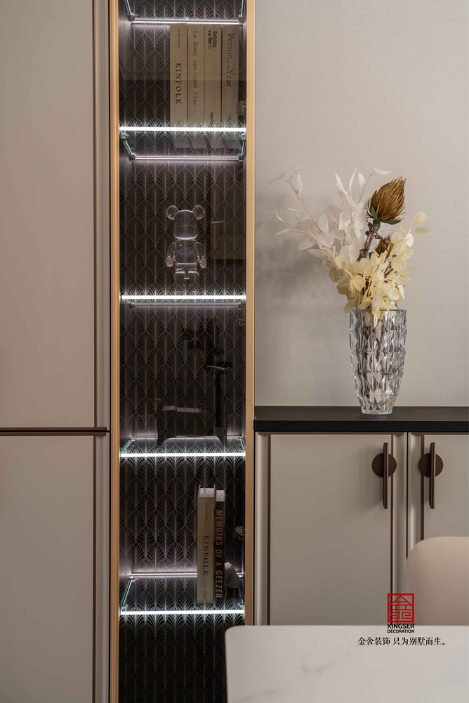 自然靈動(dòng)的材質(zhì)與樸素之色相互輝映,米色空間里琥珀色與藍(lán)色點(diǎn)綴其中,設(shè)計(jì)師以當(dāng)代語(yǔ)言演繹傳統(tǒng)東方美學(xué)