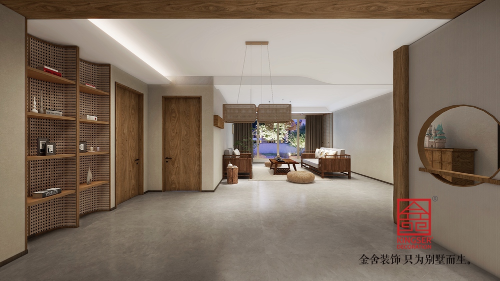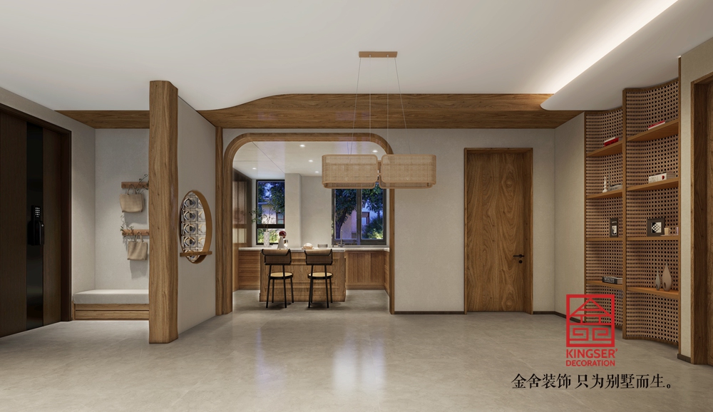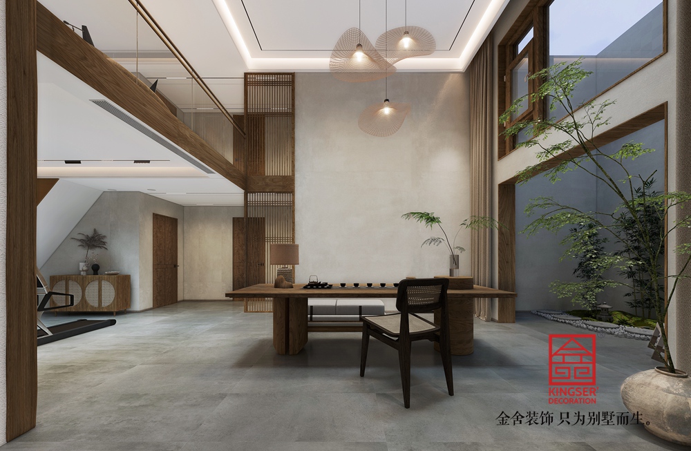 用溫潤的實木和古風裝飾營造出一方深邃而幽靜的安放心靈之所。