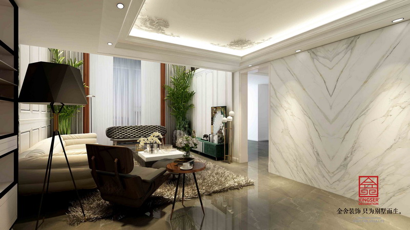 此案例為金舍裝飾-橡樹灣300平米現代風格裝修效果圖。簡約的表現形式來滿足人們對于簡約卻不簡單的居室環境的要求,由于現代人快節奏、高頻率以及滿負荷的生活節奏,導致了人們需要在一天的工作之余,想要得到一個簡約型的空間來得到一個心靈的放松,希望能夠在家中擺脫世俗的繁瑣、復雜并且追求簡單、自然的的生活狀態。