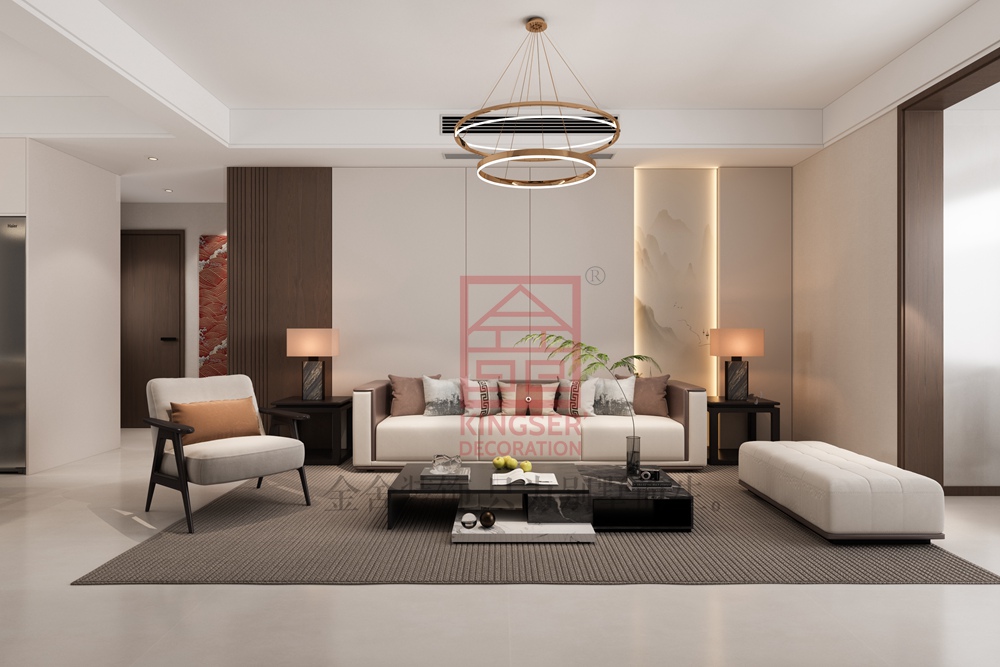 設計說明:此案例為石家莊裝修公司-云和賦112平米現代簡約風格裝修效果圖。客廳整體色調以白色和灰色為主,營造出一種清新、明亮的空間感。白色沙發與灰色地毯的搭配,不僅提升了空間的亮度,還賦予了空間一種高雅而寧靜的氣質。墻上掛著的抽象藝術畫作,以紅色和棕色為點綴,為整個空間增添了一抹活力與溫暖,使得整個客廳在簡約中不失溫馨與個性。