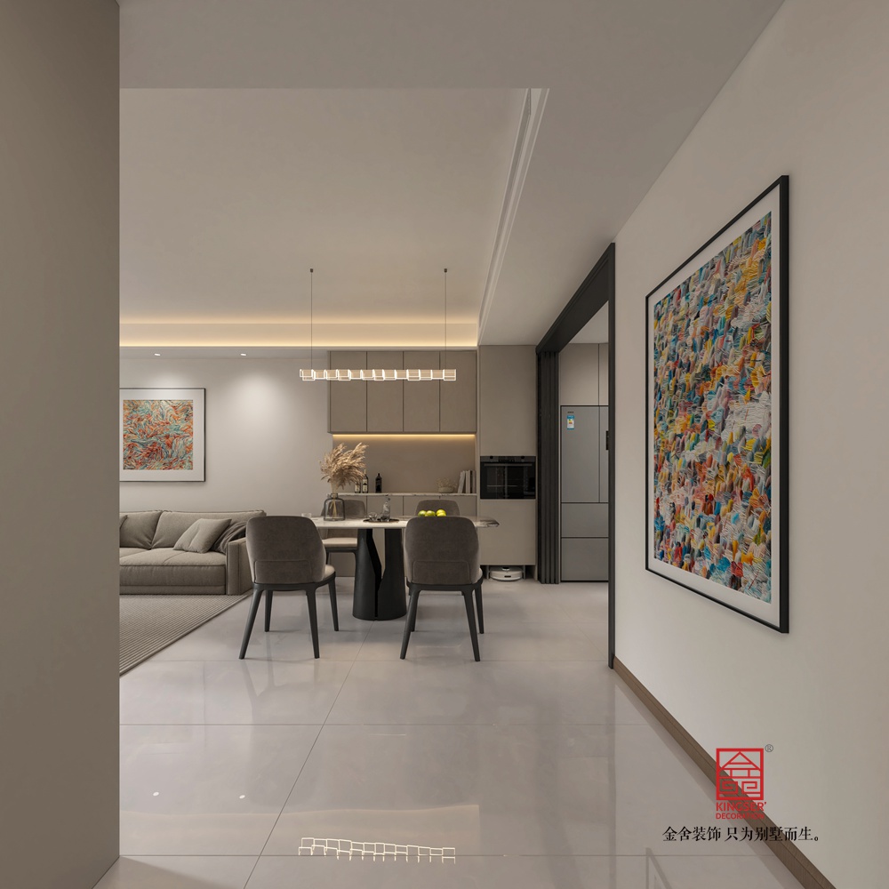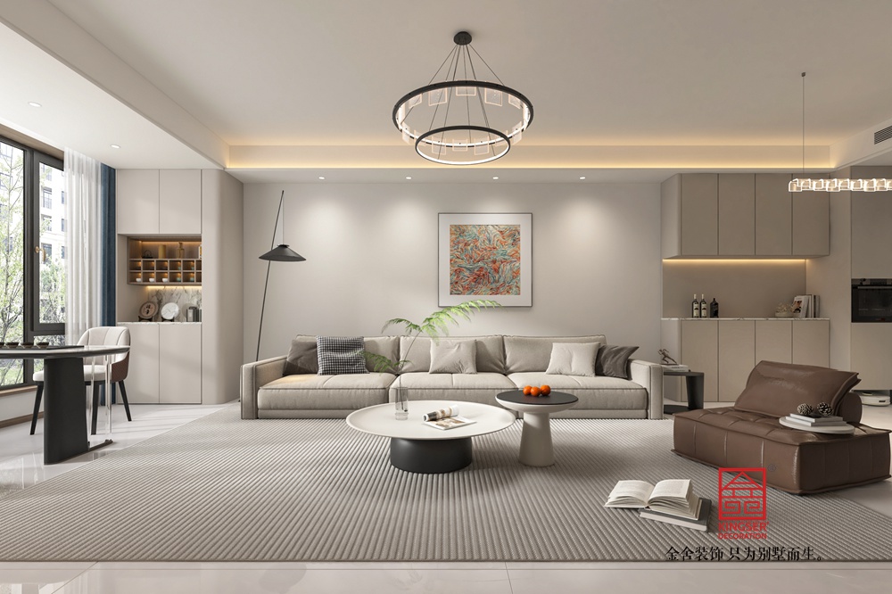 在家具布局上,我們注重了舒適性和實(shí)用性。大沙發(fā)和單人沙發(fā)的擺放,既滿足了家庭成員的休息需求,又便于交流和互動(dòng)。咖啡桌的圓形設(shè)計(jì),不僅美觀大方,還便于放置物品和進(jìn)行小范圍的聚會(huì)活動(dòng)。此外,開放式廚房的設(shè)計(jì),使得烹飪和用餐更加方便,同時(shí)也增強(qiáng)了空間的通透感和互動(dòng)性。