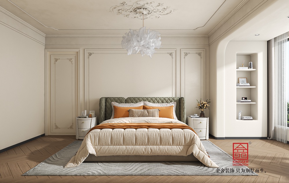 此案例為石家莊裝修公司-瑞凝府168平米現代輕奢風格裝修效果圖。整個客廳空間的設計注重簡約而不簡單,既體現了現代風格的時尚與大氣,又融入了溫馨與舒適的生活氛圍。在這里,居住者可以放松身心,享受與家人、朋友相聚的美好時光。