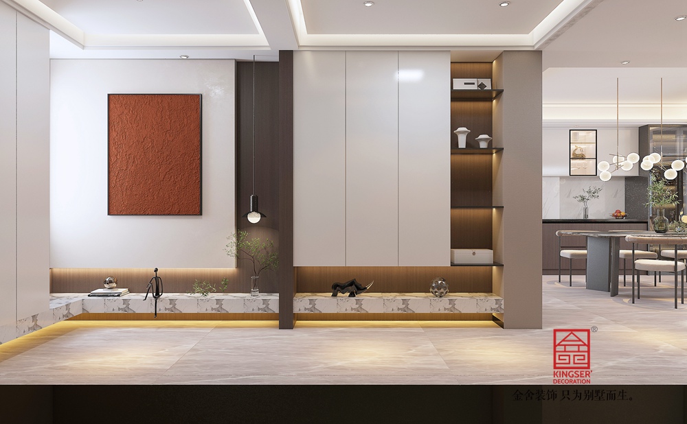 此設計聚焦現代簡約,以簡潔為核心。色彩上,采用大面積純色,黑、白、灰奠定沉穩基調,局部亮色提亮空間。造型方面,直線條主導,家具、裝飾皆具利落幾何感。空間布局緊湊合理,減少隔斷,讓功能區自然銜接。材質選擇注重質感與肌理,玻璃、金屬與木材搭配,剛柔并濟。裝飾手法極簡,一幅抽象畫、一盆綠植,于留白處彰顯藝術情韻,為居住者構筑簡約舒適且富有個性的生活環境。