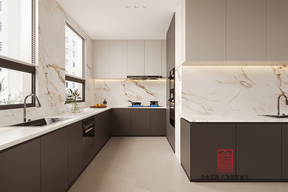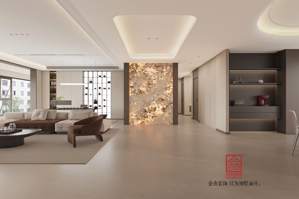 大理石玄關墻質感鮮明,自然舒展的紋理,展現出生命無限的張力和空間的寬廣無垠。