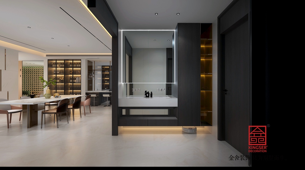 本別墅客廳設計,以現代簡約風格為基調,融入輕奢元素。大面積運用淺色系,搭配溫潤的木質與質感石材,營造出柔和雅致的氛圍。