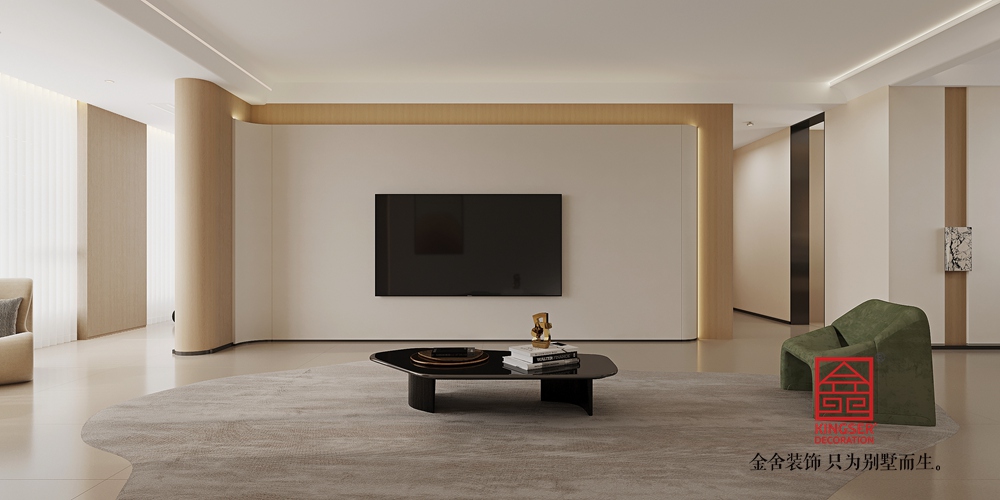 既滿足 211 平大戶型對空間開闊感與功能性的需求,又以原木的溫暖中和極簡的冷靜,傳遞出 “回歸自然、簡約舒適” 的生活態度,讓居者在簡潔的環境中感受原木帶來的自然治愈與品質生活。