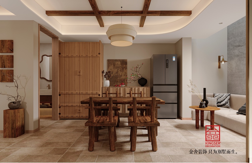 空間色調以沉穩的高級灰、溫潤的木色為基底,局部點綴古銅金、翡翠綠等精致色彩,如同畫卷中的提亮點睛,在低調中彰顯非凡格調。天然石材的肌理、木質格柵的光影、絲綢質感的軟裝,共同構建了豐富的視覺與觸覺層次,體現了石家莊裝修公司對材質與細節的極致追求。