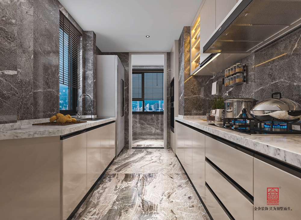此案例為金舍裝飾- 國赫天著155平米現代輕奢風格裝修效果圖。輕奢并不是一種設計風格,而是一種代表著獨特品位和格調的生活態度,輕,是一種優雅態度,低調、舒適,卻無損高貴與雅致;奢,是一種不讓人有壓力但又是追求品質和精致生活的狀態。與大家比較熟悉的現代風格相比,多了幾分品質和設計感;透露生活本真純粹的同時,又融合了奢華和內涵的氣質。拋棄奢華的外在表現,并且使用輕度的體現方式,在優雅之上稍加金屬修飾,便形成了自然而極致的居家風格。