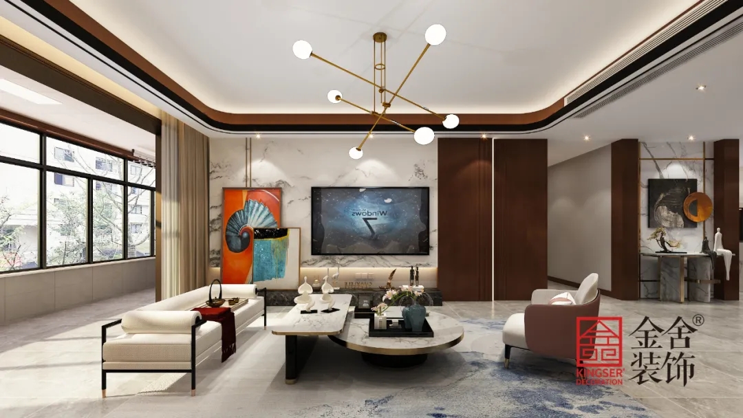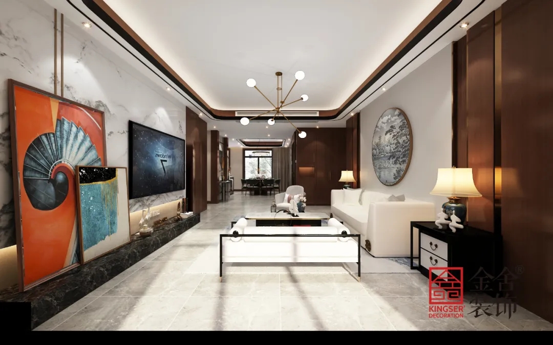 此案例為金舍裝飾-融創(chuàng)中心217平米新中式風(fēng)格裝修效果圖。新中式風(fēng)格就像在時(shí)間長(zhǎng)河中翻涌的浪花,目視春夏秋冬幡然而過(guò),而他卻在一片沸沸揚(yáng)揚(yáng)中緩慢的走著,他身后拖得東西太多了,五千年的興衰變化,五千年的滄海桑田,它每走的一步都是在用全身的力氣去保護(hù)著身后無(wú)法抹去的過(guò)去和記憶,滄海一瞬世間千年。每一朵展開(kāi)的文明之花都是中華五年前孕育的美好結(jié)晶。