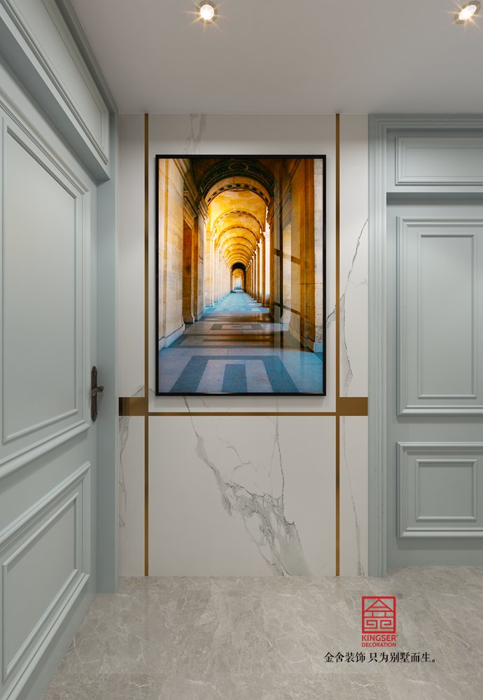 設計說明:此案例為石家莊裝修公司-東南智匯城170平米法式風格裝修效果圖。法式輕奢的家裝風格,完美復制宮廷法式的優雅精致生活,簡潔的家裝設計中,又折射出隱藏中的高貴氣質,雕刻細致、造型逼真、化繁為簡的法式輕奢裝飾,不斷演繹著法式的浪漫、清新以及輕奢時尚。運用淡雅的色彩,低調的設計,呈現現代的輕奢感。軟裝搭配靈活性,元素巧妙的搭配布局,打造輕奢式的法式浪漫,符合法式輕奢風格的主題,增強空間的藝術感。