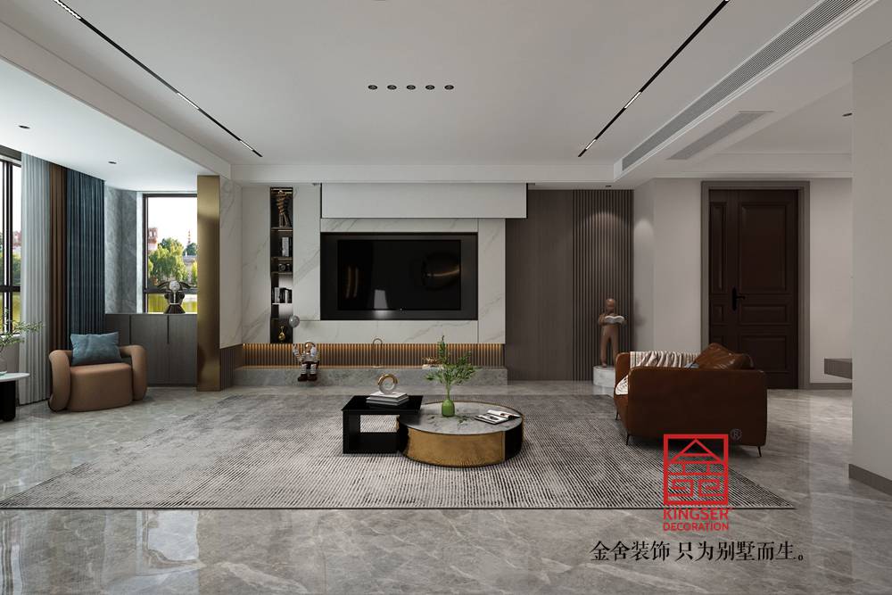 此案例為金舍裝飾-東南智匯城191平米現(xiàn)代輕奢裝修案例。本案整體為現(xiàn)代輕奢風(fēng)格,整體設(shè)計追求空間平衡,對設(shè)計語言精心構(gòu)建,在獨特的現(xiàn)代理念中力求生活的本源:知性,優(yōu)雅,具有人文氣息。為整個設(shè)計帶來輕奢視感。色彩上,用高級灰作為主色調(diào),奠定了空間沉穩(wěn)的底色。與皮質(zhì),金屬,巖板,木材等不同材質(zhì)的結(jié)合,既保持著整齊的視感,又將高級氣質(zhì)凸顯。