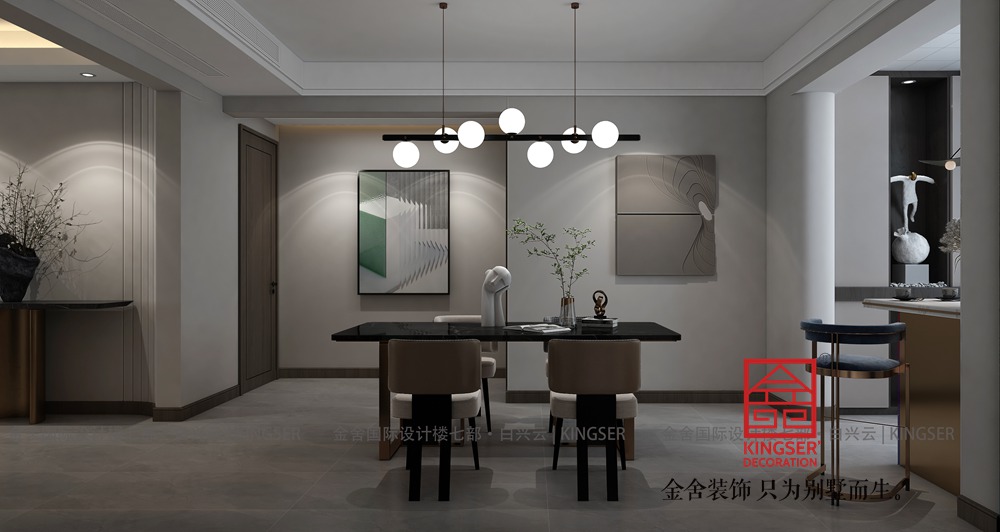 此案例為金舍裝飾-榮盛華府178平米侘寂風(fēng)格裝修效果圖。進(jìn)入居所,水泥漆的墻面以清水氣質(zhì)與斑駁肌理包裹著靜謐、沉著與細(xì)膩,悄無聲息的登場(chǎng),視覺感受并不是強(qiáng)有力的沖擊的卻可以將情緒抻平,用弱反光的涂料,模擬柔和的感覺,在清晰的實(shí)體世界中,難得片刻模糊。