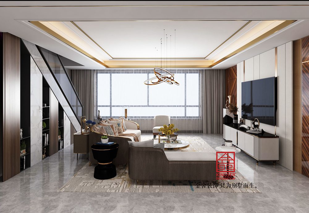 設計說明:本套風格為金舍裝飾-西山林語400平米輕奢風格裝修效果圖。港式輕奢風格,通過空間布局上的合理運用,既能在生活上滿足客戶的需求,又傳達出港式輕奢風格獨特的靈魂。通過戶型改造,將港式輕奢獨特的鮮明色彩,賦有強烈的層次感表現出來,最大程度增加空間功能,將港式輕奢風格充分展示,合理利用了戶型面積,將空間最大化利用,給人一種舒適、新穎、獨特的寄托感。