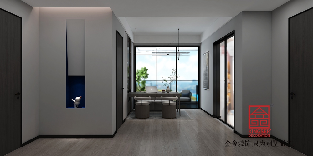 本案黑白步調(diào)簡單純粹,保持空間的統(tǒng)一性,凸顯出舒適與自由,沉穩(wěn)又不失自然靈動。無論溫茶細品,還是閑情逸趣,都是豁達樂觀的態(tài)度。