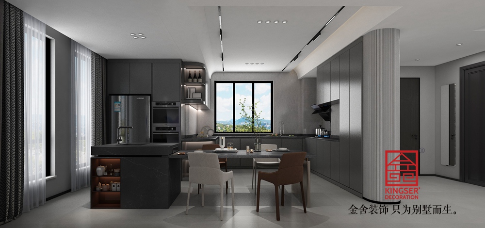 當陽光傾灑坐在沙發(fā)中,放空自己感受時間的游走,肌理、質(zhì)感,設(shè)計中以極簡的黑灰融合為基調(diào),借助材質(zhì)、燈光、軟裝等,搭配表達一種安靜自然的生活規(guī)律,干凈簡潔的設(shè)計與克制的姿態(tài),生活顯得更為純粹歲月安然,不慌不忙、不緊不慢,一切都抒寫在沉默的空間里。