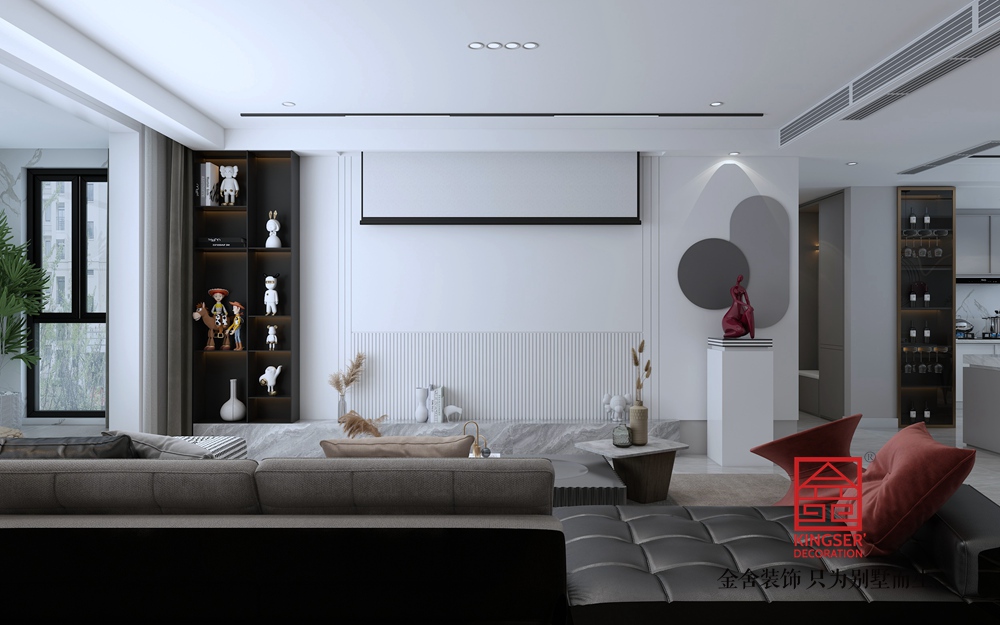 本案風格設計追求簡約和簡約,注重形式,顏色,工藝和細節。無論是點,線或表面設計,還是色調,功能配色,應用考慮,它都會更加愉悅。簡潔的線條可以勾勒出純粹而完美的空間世界。我習慣了五顏六色的鮮花的組合,只知道什么是真正的共鳴。以黑色和白色灰色作為色彩主題的空間通常比那些豐富的色彩更具藝術吸引力。