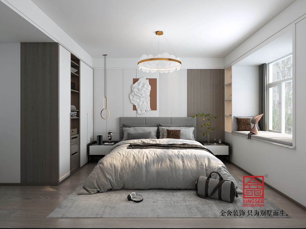 本案風(fēng)格設(shè)計追求簡約和簡約,注重形式,顏色,工藝和細節(jié)。無論是點,線或表面設(shè)計,還是色調(diào),功能配色,應(yīng)用考慮,它都會更加愉悅。簡潔的線條可以勾勒出純粹而完美的空間世界。我習(xí)慣了五顏六色的鮮花的組合,只知道什么是真正的共鳴。以黑色和白色灰色作為色彩主題的空間通常比那些豐富的色彩更具藝術(shù)吸引力。