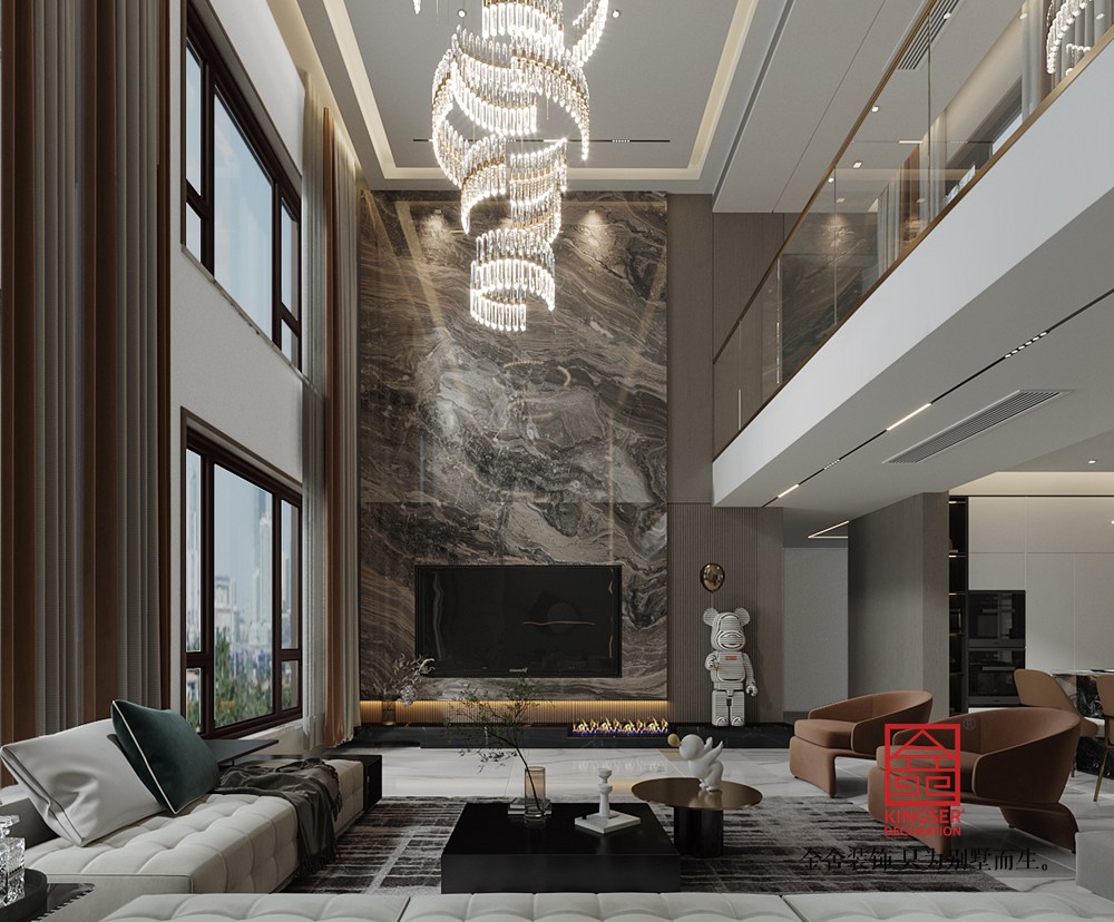 設(shè)計(jì)理念: 本案彌漫著自然主義的基調(diào),肌理選材成為空間氣質(zhì)的導(dǎo)語。原木與大理石的奢華詮釋簡約現(xiàn)代卻不失雅致的造型,空間的層次感在層疊的燈具、簡潔的線條中拉滿,沉穩(wěn)而靈動(dòng)。