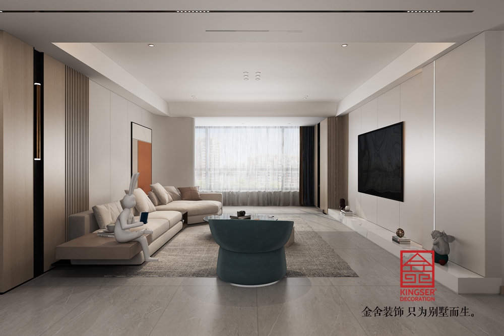 設計說明:本案注重高品質與設計感,將優雅時尚的質感結合著現代材質及裝飾技巧巧妙地呈現在居室中,展示著精致高端的生活態度。或簡約大方,或繁復含蓄,或個性鮮明,或藝術方雅,現代輕奢風格的設計有著千萬種打造方法,花樣繁多的設計更是為居室帶來無窮盡的時尚風華。