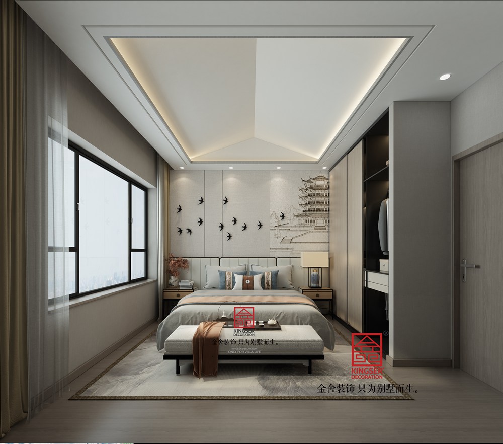 當(dāng)前位置: 首頁 > 裝修案例 > 靈感之源 > 九里晴川143平米上疊新中式風(fēng)格裝修-臥室